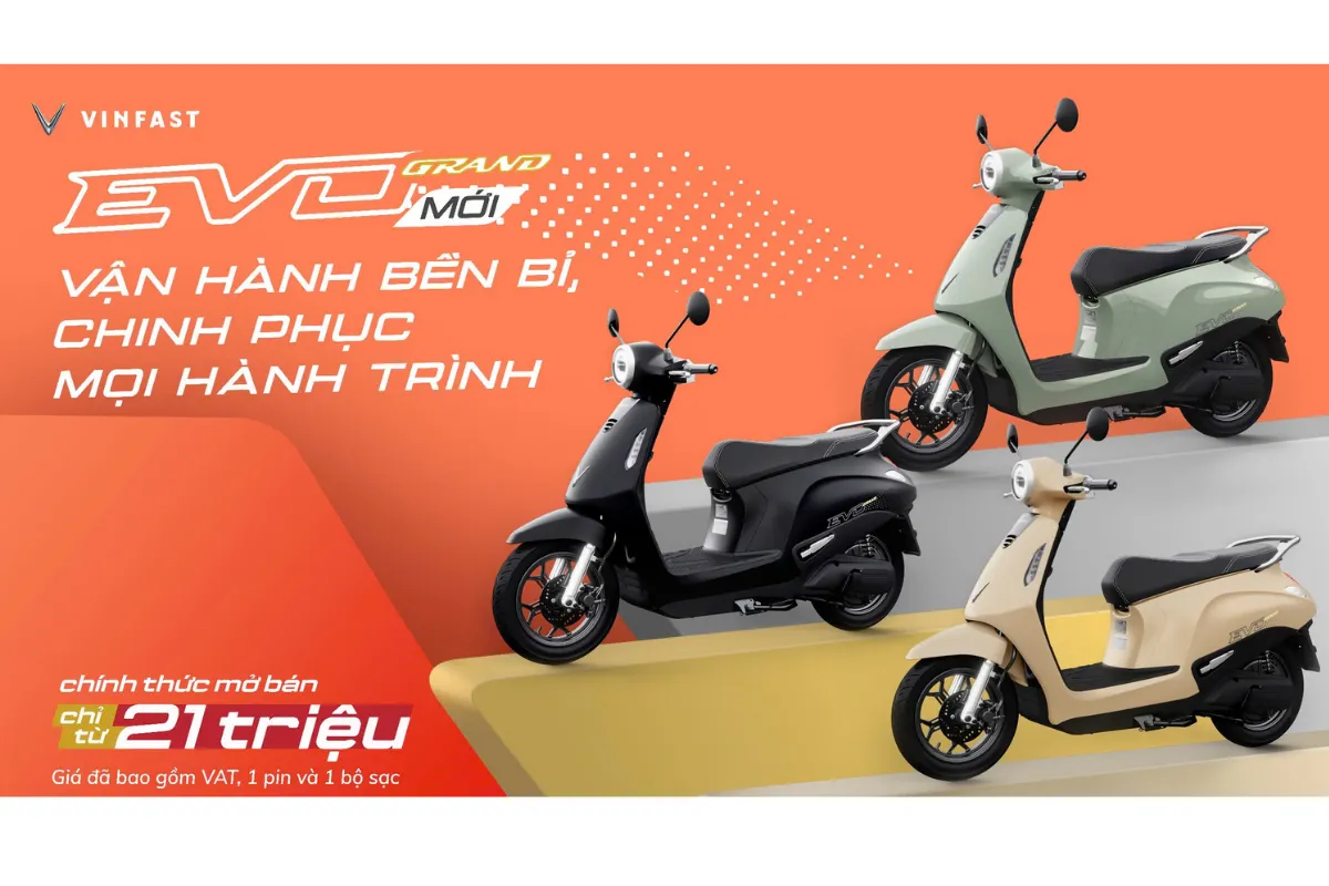 Thị trường xe máy điện tại Việt Nam đang bước vào giai đoạn phát triển mạnh mẽ khi ngày càng có nhiều người dùng tìm kiếm phương tiện di chuyển xanh, tiết kiệm và thân thiện với môi trường. Trong bối cảnh đó, VinFast tiếp tục thể hiện vai trò tiên phong bằng việc ra mắt bộ đôi sản phẩm xe máy điện hoàn toàn mới mang tên Evo Grand và Evo Grand Lite. Với mức giá khởi điểm chỉ từ 18 triệu đồng, thiết kế hiện đại, nhiều tính năng thông minh và đặc biệt là khả năng di chuyển lên tới 262 km sau mỗi lần sạc đầy, đây được xem là lựa chọn đáng cân nhắc cho mọi đối tượng khách hàng, từ học sinh, sinh viên cho đến người đi làm.