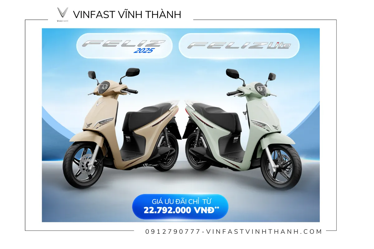 Ở phân khúc cao hơn, VinFast Feliz 2025 và Feliz Lite đang được ưu đãi chỉ từ 22.792.000 đồng so với giá niêm yết 25.900.000 đồng. Đây là dòng xe được nhiều gia đình và nhân viên văn phòng lựa chọn nhờ thiết kế hiện đại, vận hành êm ái, khả năng chở nặng tốt và quãng đường di chuyển ấn tượng trong một lần sạc.