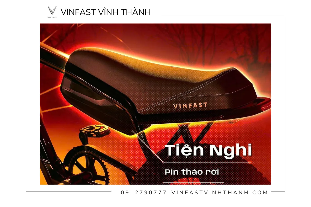Pin được thiết kế dạng tháo rời nên người dùng có thể dễ dàng mang pin lên nhà để sạc mà không cần đưa cả xe vào bên trong. Thời gian sạc từ 4 đến 6 tiếng, tức có thể sạc qua đêm rồi sử dụng liên tục trong nhiều ngày. Đây là điểm mạnh rất đáng giá đối với người sống tại chung cư, hoặc những người có thói quen di chuyển hàng ngày nhưng không muốn mất quá nhiều thời gian chờ sạc.
