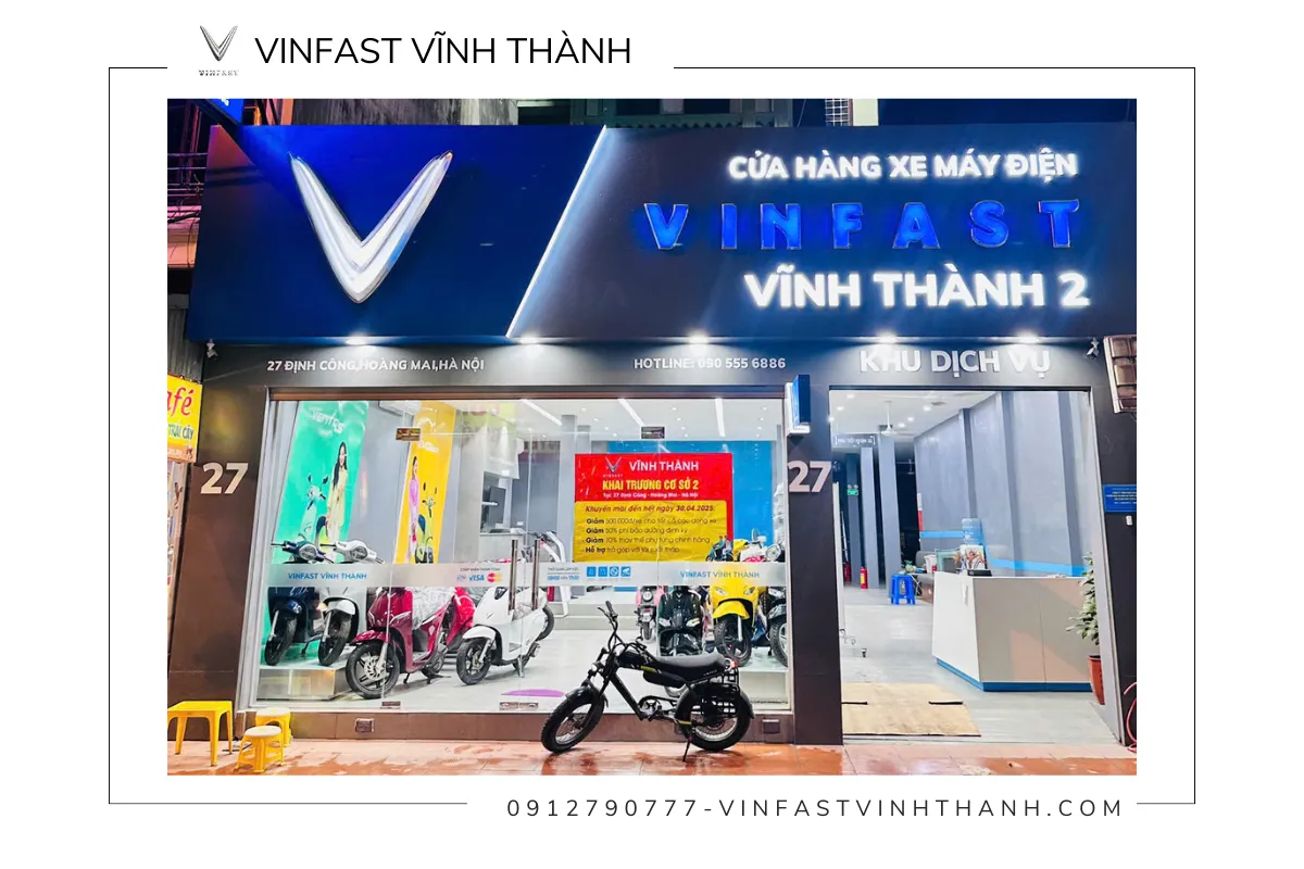 Tháng 4 này, khi đến với VinFast Vĩnh Thành 2 tại địa chỉ 27 Định Công, Hoàng Mai, khách hàng sẽ có cơ hội nhận được hàng loạt ưu đãi hấp dẫn. Đây không chỉ là dịp để bạn sở hữu những chiếc xe máy điện chất lượng với mức giá hợp lý, mà còn là cơ hội để tận hưởng các dịch vụ chăm sóc xe chuyên nghiệp với chi phí ưu đãi nhất trong năm.