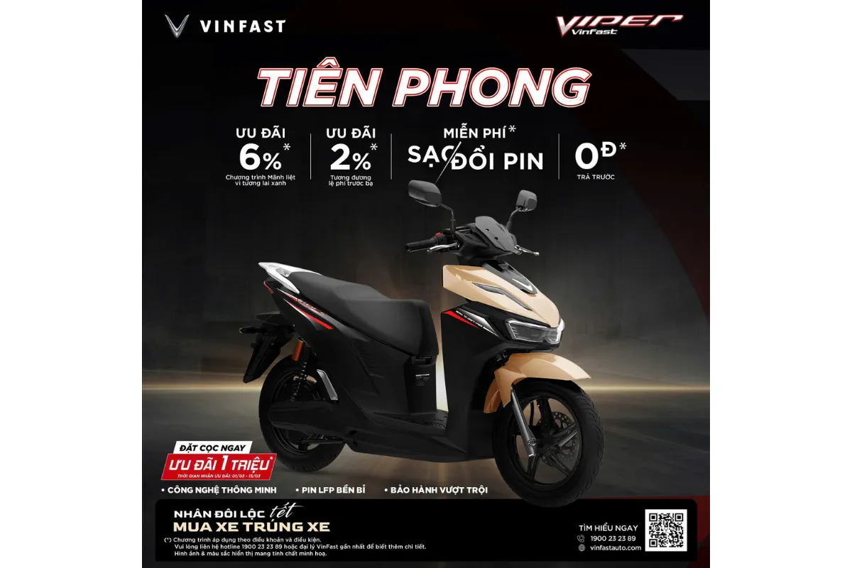 Mức giá này đặt xe vào vị trí cạnh tranh trực tiếp với các mẫu xe xăng phổ biến như Honda Air Blade. Với lợi thế về chi phí vận hành thấp, công nghệ hiện đại và khả năng đổi pin nhanh, Viper có tiềm năng trở thành lựa chọn hấp dẫn cho người dùng đang cân nhắc chuyển sang xe điện.